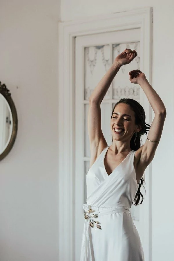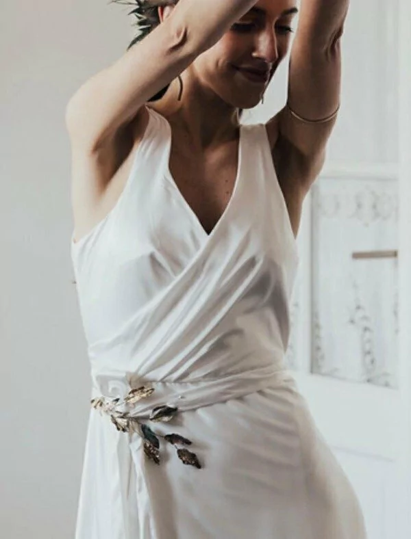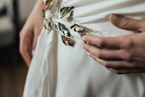 Se puede usar tanto como tocado o aplique en el vestido.
