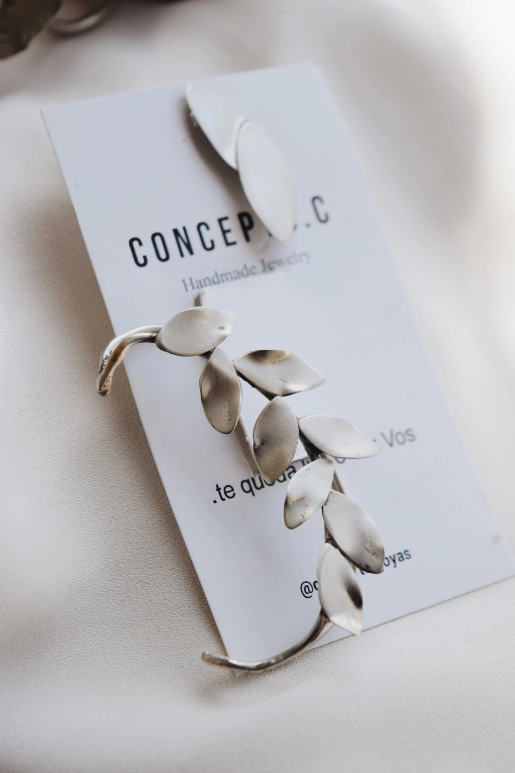 Descubrí nuestros exclusivos earcuffs con hojitas hechas a mano, disponibles en alpaca, bronce o cobre. Cada pieza es única, diseñada para aportar un toque distintivo a tu look.